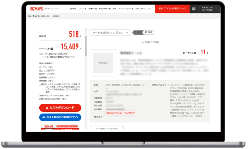国内最大級の企業検索サービス「BIZMAPS」と連携しており、いつでもリストがダウンロード可能です。