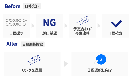 メールで日程調整をする際に、1回のやり取りで中々調整できずにメールを何通もやり取りする手間から解放されます。